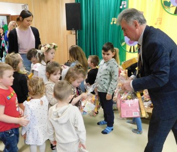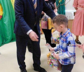 W związku ze zbliżającymi się Świętami Wielkanocy w naszym przedszkolu zjawił się także Pan Janusz Piechocki Burmistrz Miasta i Gminy Margonin słodkimi niespodziankami, od Zajączka Wielkanocnego, sponsorowanymi przez firmę EDP Renewables Polska, dla wszystkich przedszkolaków.
