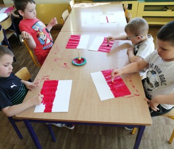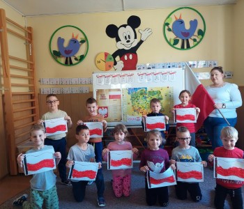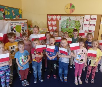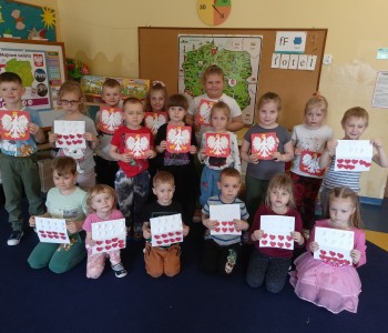2 maja obchodzony jest Dzień Flagi Rzeczypospolitej Polskiej. My także postanowiliśmy uczcić nasze barwy ojczyste - po całym tygodniu zajęć poświęconych poznawaniu naszych symboli narodowych i najważniejszych miejsc w Polsce, w poszczególnych grupach wiekowych zorganizowaliśmy skromne obchody tego święta w przedszkolu. Przedszkolaki w czasie zajęć miały okazję przypomnieć sobie symboliczną wymowę barw polskiej flagi i to, jak symbole narodowe szanować.