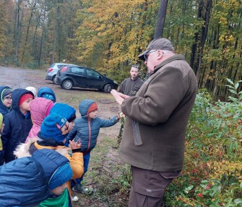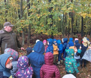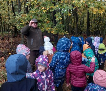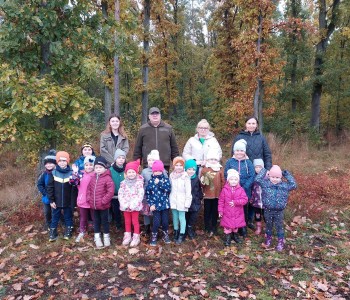 26.10.2023r. grupy: Myszka Miki i Koziołek Matołek wybrały się na wycieczkę do lasu. Głównym celem wizyty w lesie było przybliżenie przedszkolakom środowiska przyrodniczego jakim jest las oraz zapoznanie dzieci z roślinnością tam występującą. Zgodnie z omawianą tematyką przedszkolaki wybrały się na spacer do lasu w poszukiwaniu śladów jesieni.