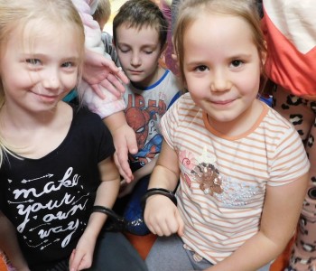 Następnie Pan Policjant opowiedział przedszkolakom o swoim umundurowaniu i o swojej pracy. Pan Patryk odwiedził również w salach młodsze grupy: „Smerfy”, „Krasnal Hałabała” oraz „Kubuś Puchatek”. Dzieci z młodszych grup również dowiedziały się na czym polega praca policjanta i z czego składa się jego umundurowanie. Serdecznie dziękujemy Panu Patrykowi za poświęcony czas i zapoznanie dzieci z umundurowaniem oraz pracą policjanta.