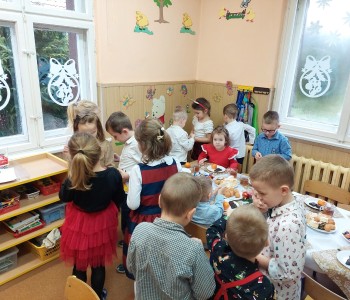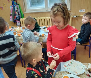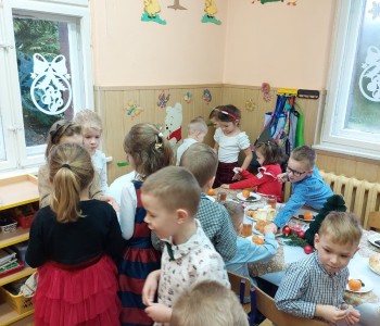 Boże Narodzenie to najbardziej oczekiwane święta przez nas wszystkich. W przedszkolu tworzymy sytuacje sprzyjające czynnemu uczestnictwu w tradycji. 21 grudnia obchodziliśmy uroczystość Wigilii. Niespodziewanym gościem tego dnia był Gwiazdor, który rozdał dzieciom piękne prezenty. Następnie wszyscy zajęli miejsca przy odświętnie nakrytym stole, aby zjeść wspólny posiłek. Nie zabrakło na naszym stole barszczu, ryb, kapusty z pieczarkami oraz makiełek. Śpiewane kolędy, płonące świece i choinka wprowadziły nas wszystkich w świąteczny nastrój pełen życzliwości i serdeczności. Wigilia to szczególna uroczystość w naszym przedszkolu, to wyjątkowe wydarzenie, które integruje dorosłych i dzieci.