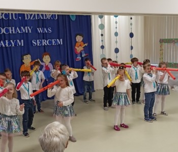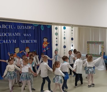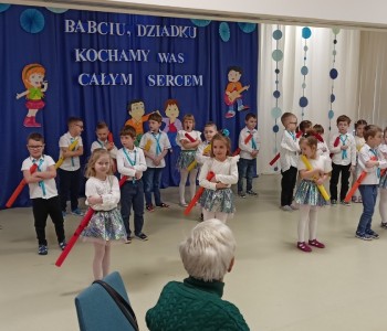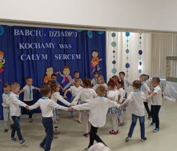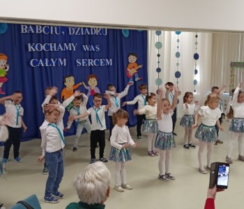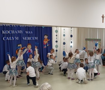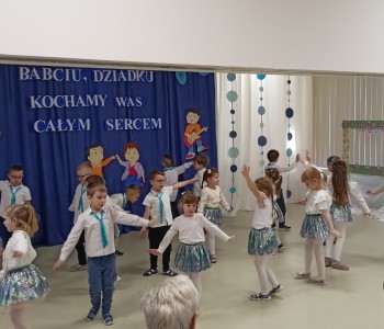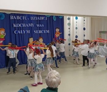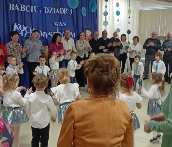 Dzieci zaprezentowały wiersze, piosenki oraz tańce, które ćwiczyły na tą uroczystość. W przepięknej scenografii oraz wyjątkowej atmosferze, wnuczęta wspaniale wystąpiły przed bliskimi, następnie przedszkolaki zaprosiły babcie i dziadków na słodki poczęstunek przygotowany przez rodziców, aby w szczególny sposób okazać swoim bliskim szacunek i po raz kolejny podziękować za miłość, cierpliwość i zrozumienie. To była naprawdę wyjątkowa uroczystość, pełna uśmiechu, radości i dumy. Szczęśliwe i rozpromienione twarze babć i dziadków dały wyraz tego, jak ważne są takie spotkania i chwile spędzone wspólnie z wnukami.