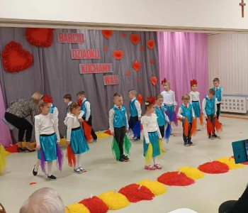 Były wiersze, piosenki i tańce z kolorowymi rekwizytami. Przedszkolaki pięknie wystąpiły otrzymując gromkie brawa od widowni. Nadeszła kolej na wspólną zabawę z Babciami i Dziadkami oraz czas na słodki poczęstunek. To był miły i udany dzień. Dziękujemy Seniorom za poświęcony czas i miłą atmosferę jaką stworzyli, a dla dzieci brawa za piękny występ.