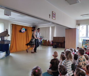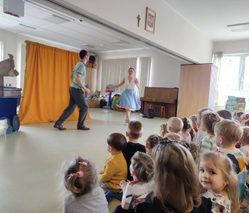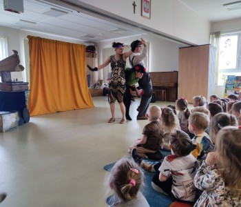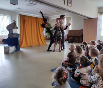 Ostatnio nasze przedszkolaki miały niezwykłą okazję wzięcia udziału w koncercie Teatru Kulturka pt. "Bale i Turnieje", który przekształcił nasze przedszkole w krainę pełną muzyki i tańca. Gwiazdą okazała się mucha Betty, która zaprosiła dzieci do swojego świata tańców swingowych. To było widowisko, które porwało zarówno małych, jak i tych nieco większych widzów w wir radosnej zabawy i ekscytujących przygód.