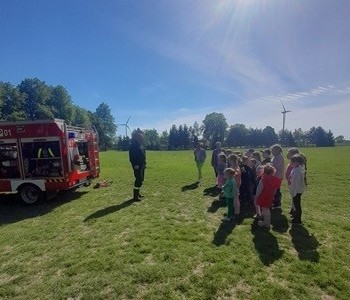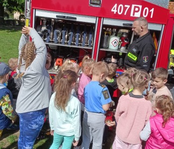 W dniu 06 maja dzieci z grupy Bolka i Lolka oraz Pszczółki Mai spotkały się z Ochotniczą Strażą Pożarną z Podstolic i Budzynia. Dzięki uprzejmości taty Franka, dzieci miały okazję posłuchać ciekawych informacji na temat pracy strażaka, poznały sprzęt wykorzystywany w tym zawodzie. Przedszkolaki zobaczyły, jak wygląda strój strażaka gotowego do akcji, oraz jak wygląda sprzęt ratowniczy i gaśniczy wykorzystywany do ratowania ludzkiego życia.