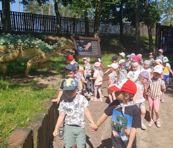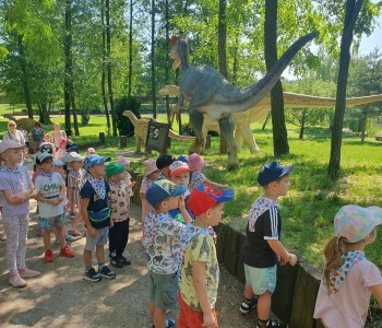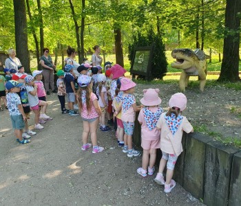 28 maja dzieci z grup: „Kubusia Puchatka” i „Wróbelka Elemelka” wybrały się na wycieczkę do Rodzinnego Parku Rozrywki Zaurolandii w Rogowie. Już od samego rana wszyscy byli bardzo podekscytowani podróżą w towarzystwie rówieśników. Po przyjeździe rozpoczęliśmy zwiedzanie. Przedszkolaki z wielkim entuzjazmem podziwiały figury dionozaurów i słuchały prehistorycznych ciekawostek.