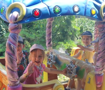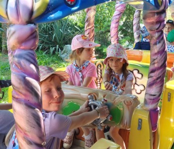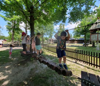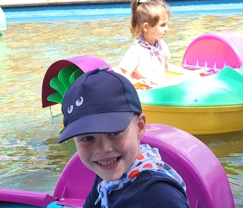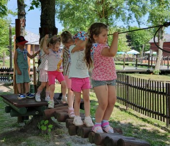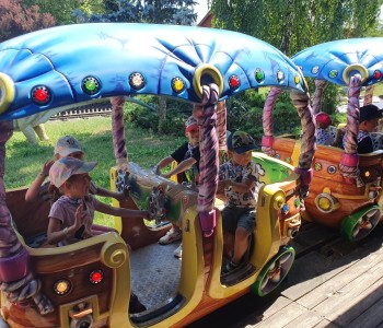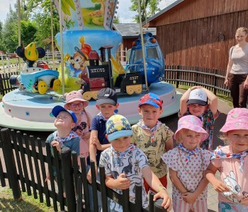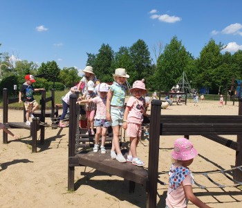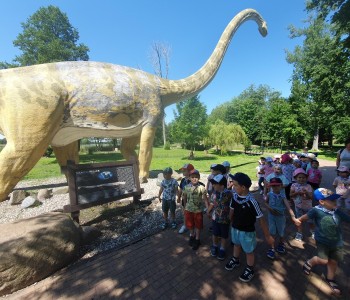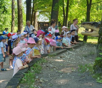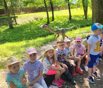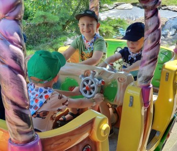 Kolejnym punktem wycieczki był atrakcyjny park rozrywki, w którym można był wspaniale się bawić. Nie zabrakło dmuchańców, karuzeli i sprzętów do zjeżdżania, huśtania czy wdrapywania się. Wielką atrakcją były łódki oraz parki linowe, w których dzieci wykazały wielką odwagę i doskonałą koordynację. Wycieczka w atrakcyjny sposób wzbogaciła wiedzę dzieci o świecie. Przedszkolaki odkrywały różnorodność świata zwierząt sprzed setek milionów lat, eksplorowały otaczającą przyrodę, poznały mezozoiczne gady prezentowane w naturalnej wielkości oraz ważne wydarzenia z życia dziejów na Ziemi, poszerzały umiejętności obserwacji, orientowania się w terenie. Potrafiły również przestrzegać zasad bezpiecznego zachowania się w różnych sytuacjach. To był udany dzień, pełen wrażeń. Brawo dla wszystkich dzieci!