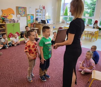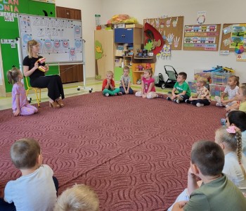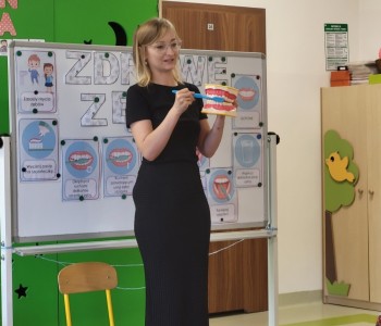 We wtorek 17 września odwiedziła nas przedstawicielka Stacji Sanitarno-Epidemiologicznej w Chodzieży, aby spotkać się z przedszkolakami w ramach profilaktyki zdrowotnej. Dzieci bardzo chętnie rozmawiały z panią Karoliną, która w bardzo przystępny sposób przekazała im wiedzę dotyczącą tego jak dbać o zęby. Starszaki dużo już wiedzą na temat zdrowego uśmiechu , ale dzięki temu spotkaniu zdobyły więcej informacji i usłyszały wiele ciekawostek. W celu utrwalenia informacji dzieci otrzymały ulotki dotyczące higieny jamy ustnej, które zabrały do domu.