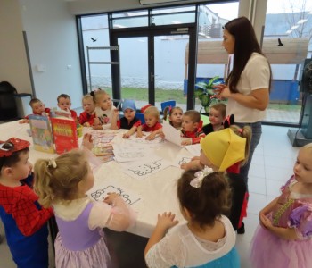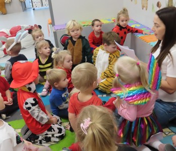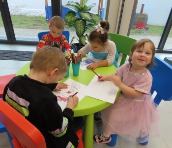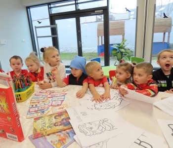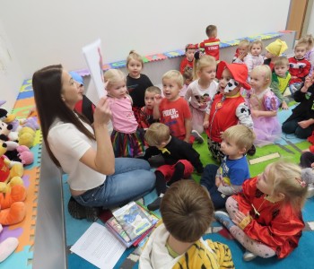 5 listopada przypada "Dzień Postaci z bajek". Z tej okazji dzieci z najmłodszych grup otrzymały zaproszenie do biblioteki. Wspólnie z paniami nazywały i rozpoznawały bohaterów ulubionych bajek i kolorowały obrazki z ich konturami. Na zakończenie otrzymały piękne zakładki do książek ze znanymi cytatami.