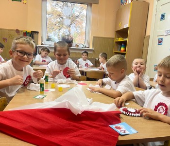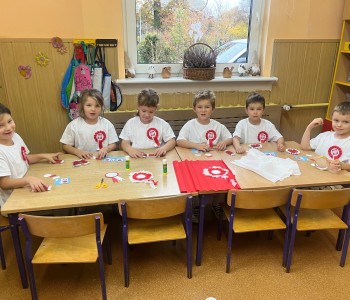 Z okazji Święta Niepodległości dzieci przyszły ubrane do przedszkola na galowo i uroczyście świętowały ten wyjątkowy dla nas, Polaków dzień. Przedszkolaki utrwaliły wiadomości na temat symboli narodowych, zabytków charakterystycznych dla wybranych miast, wydarzeń historycznych naszej ojczyzny.