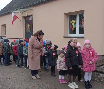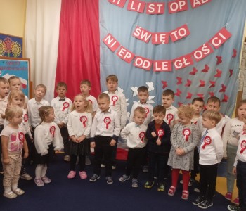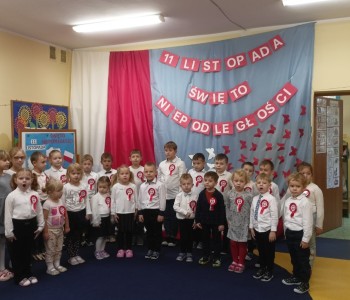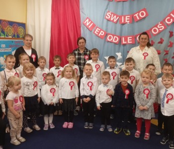 Już od najmłodszych lat staramy się wpajać dzieciom szacunek do polskich symboli i przywiązania do swojej Ojczyzny. Dzieci pięknie pokolorowały obrazki, na których znajdowały się symbole narodowe. Podczas uroczystości w przedszkolu dzieci w strojach galowych, recytowały wiersz, śpiewały piosenki o Polsce oraz zaśpiewały hymn Polski. Następnie udaliśmy się pod pomnik Powstańców Wielkopolskich i zapaliliśmy znicz, żeby uczcić pamięć poległych za wolność.