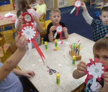 12 listopada w naszym przedszkolu odbyła się uroczystość upamiętniająca Narodowe Święto Niepodległości. Przygotowując się do tej uroczystości dzieci wykonały kotyliony, które mogły wykorzystać podczas uroczystości odbywających się 11 listopada.