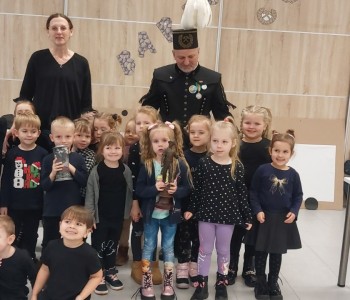 4 grudnia w Miejsko - Gminnej Bibliotece Publicznej w Margoninie odbyło się spotkanie przedszkolaków z górnikiem panem Mirosławem Adamikiem. Górnik przybył w pełnym galowym umundurowaniu. Pan Mirosław wytłumaczył dzieciom jakie znaczenie mają kolory pióropusza na czapce i kto je nosi. Przedszkolaki chętnie oglądały górniczy mundur, kaski i sprzęty, minerały wydobywane w różnych kopalniach oraz wysłuchały opowieści przedstawianych przez górnika. Na zakończenie dzieci podziękowały panu górnikowi za bardzo ciekawe, pełne wrażeń spotkanie.