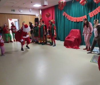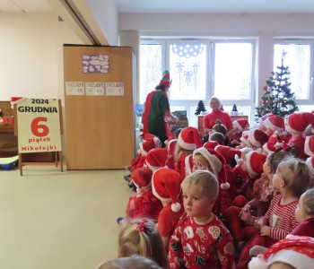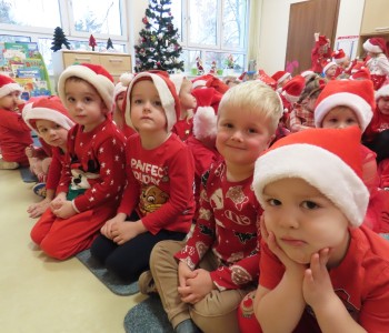6 grudnia w naszym przedszkolu zapanowała wyjątkowa, świąteczna atmosfera. Dzień Mikołajek rozpoczął się od energetycznej „Rozgrzewki Elfów”, która wprowadziła dzieci w pełen radości nastrój. Przedszkolaki z entuzjazmem uczestniczyły w zadaniach i ćwiczeniach, przygotowując się na dalsze niespodzianki. Punktem kulminacyjnym dnia było przedstawienie pt. „Gdzie jesteś Mikołaju?”, które zostało przygotowane przez rodziców oraz nauczycielki.