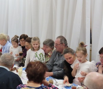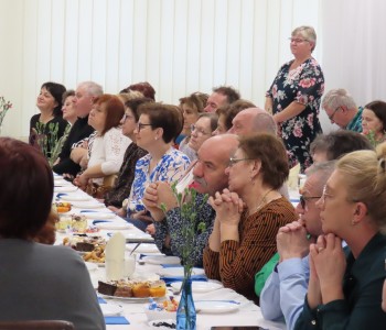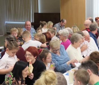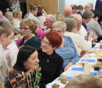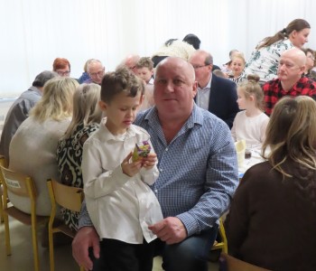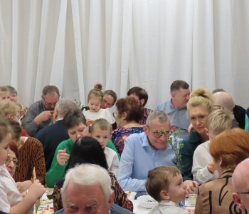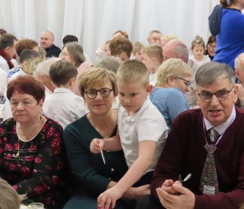 Wnuki wręczyły przygotowane upominki i uściskały tak bliskie im osoby. Na twarzach zebranych gościły szczere uśmiechy i łzy wzruszenia. Wszystkim Babciom i Dziadkom życzymy STU LAT w zdrowiu, samych pięknych dni i zawsze tak uśmiechniętej twarzy jak podczas tej pięknej uroczystości!