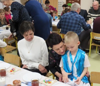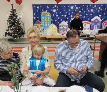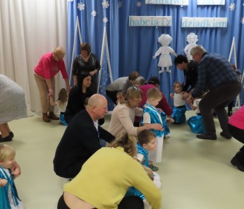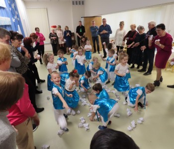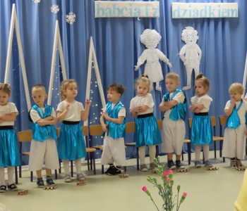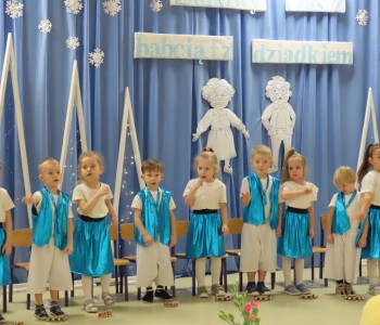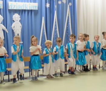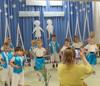 Przedszkolacy z grupy Misia Uszatka zaprosili swoich drogich dziadków do przedszkola. Licznie przybywający goście zasiadali na przygotowanych dla nich miejscach. Na twarzach dzieci widać było ogromną radość, skupienie oraz nutkę niepokoju. Uroczystość rozpoczęła wychowawczyni witając przybyłych gości i zapraszając na występ małych artystów. Najważniejsza część uroczystości składała się z recytacji wierszy, śpiewu piosenek, instrumentacji i pokazów tanecznych do zimowych utworów. Wszyscy dziadkowie z niekrytą dumą i miłością patrzyli na swoje wnuczęta i hucznie oklaskiwali małych artystów.. Wzruszenie dostojnych gości było ogromne, a ukradkiem ocierane łzy świadczyły o miłości i zadowoleniu z ukochanych wnuków, którzy obdarowywali swoich najbliższych własnoręcznie przygotowanymi prezentami, przytulasami i życzeniami. Głos zabrała również pani dyrektor Katarzyna Panek. Kolejną częścią uroczystości były wspólne zabawy. Dzieci zaprosiły dziadków do zabaw muzyczno-tanecznych, następnie się w jazdę na sankach, a zabawy zakończyła bitwa śniegowa dziadkowie kontra wnuczęta. Serdecznie dziękujemy za spędzenie czasu w naszym przedszkolu. Wszystkim babciom i dziadkom jeszcze raz życzmy dużo zdrowia i jak największej ilości spędzonego czasu z wnuczętami.