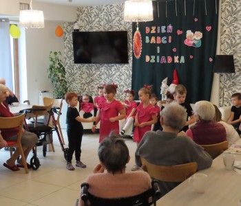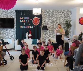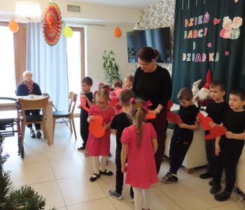 Z okazji Dnia Babci i Dziadka przedszkolaki z grupy Reksia odwiedziły mieszkańców lokalnego Domu Seniora, by zaprezentować specjalnie przygotowane przedstawienie. Spotkanie miało na celu uczczenie wyjątkowego święta, a także zacieśnienie międzypokoleniowych więzi.