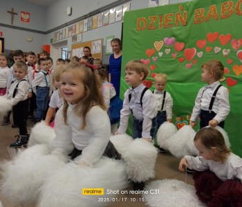 W piątek 17 stycznia dzieci z grupy Pszczółki Mai oraz Bolka i Lolka gościły swoje Babcie oraz Dziadków na uroczystości z okazji ich święta. Przedszkolaki przygotowały program artystyczny, w którym przeplatały się wiersze, piosenki oraz tańce, którymi wyrażały swoją miłość i wdzięczność za ich trud i oddanie.