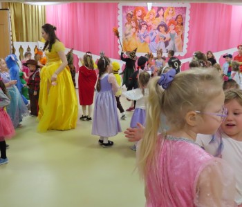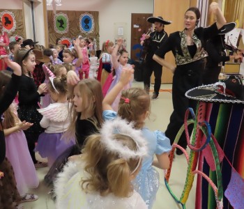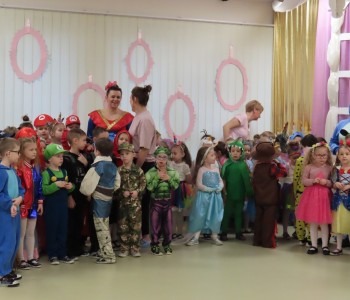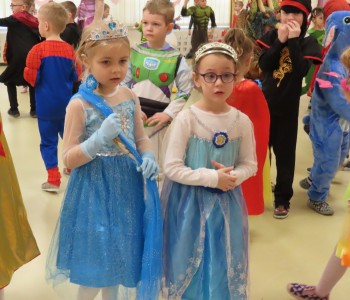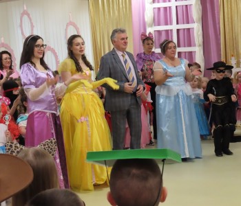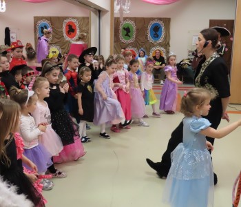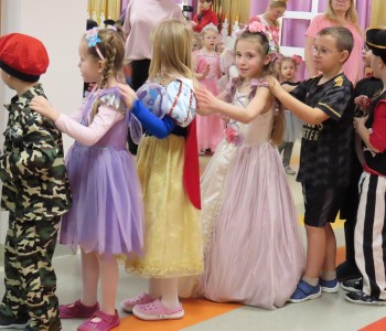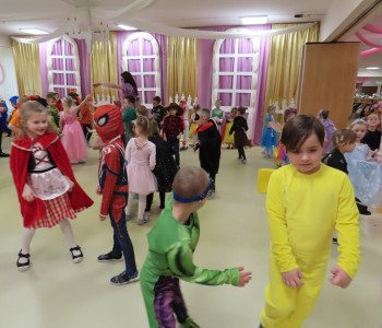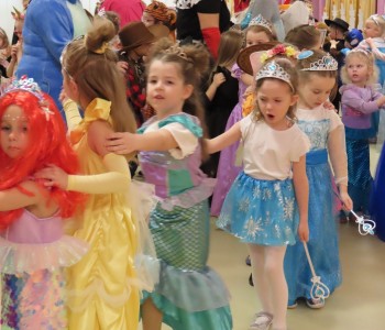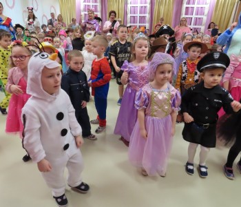 Karnawał to czas zimowych balów, maskarad, pochodów i zabaw. W tym roku w Przedszkolu Samorządowym w Margoninie w czwartek 6-tego lutego odbył się Bal Karnawałowy pt. „Na Zamku Disneya”. Tradycyjnie swoją obecnością zaszczycił nas Pan Burmistrz, który przekazał Pani Dyrektor wielki złoty klucz do Zamku Disneya i w ten sposób nastąpiło uroczyste rozpoczęcie balu. Gościliśmy również Przewodniczącą Rady Rodziców, która zrobiła dzieciom niemałą niespodziankę, przebrała się bowiem za kultową postać - Myszkę Minnie. Dzieci z wielkim entuzjazmem brały udział we wspólnych tańcach oraz zabawach ruchowo-muzycznych prowadzonych przez Cruellę z bajki pt. „101 dalmatyńczyków” oraz baśniowe bohaterki Bellę i Roszpunkę.