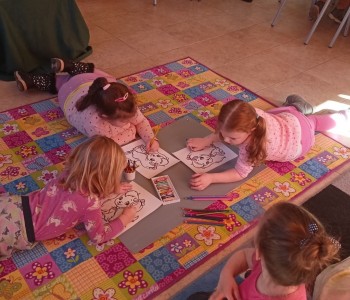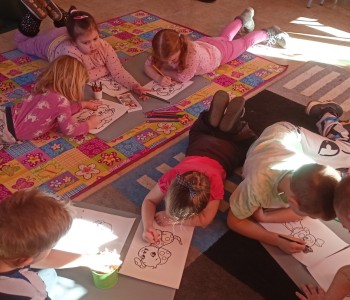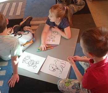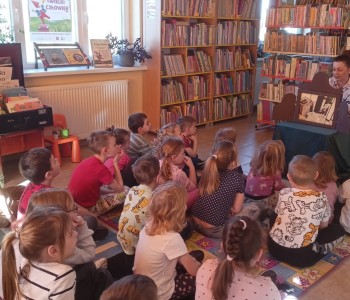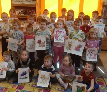 Była ona okazją do rozmowy o emocjach takich jak: radość, smutek, gniew i tęsknota oraz o sposobie dbania o zwierzęta. Kamishibai to teatr obrazkowy. Jest to technika opowiadania wykorzystująca kartonowe plansze z obrazkami i z tekstem. Po wysłuchaniu bajki dzieci pokolorowały obrazki z pieskami. Spotkanie w bibliotece odbyło się w miłej, pełnej uśmiechów i wrażeń atmosferze.