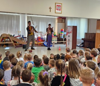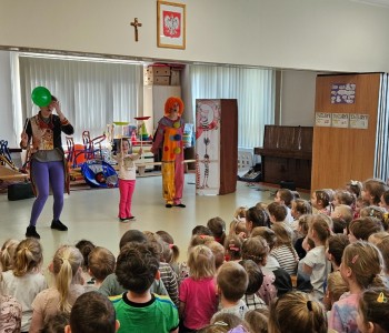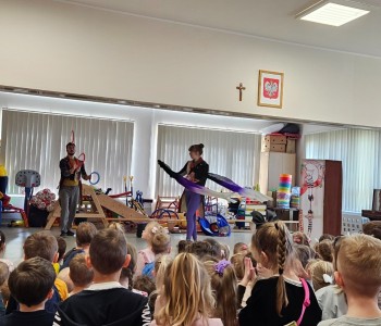 W trakcie występu, dzieci zobaczyły różne rodzaje sztuki cyrkowej, min.: żonglerkę, cyrkową równoważnię, akrobatykę z użyciem kół hula-hop oraz wachlarzy, klaunadę. Klaun bardzo rozbawił społeczność przedszkolną i radości nie było końca. Dzieci nagrodziły występ artystów wielkimi brawami.