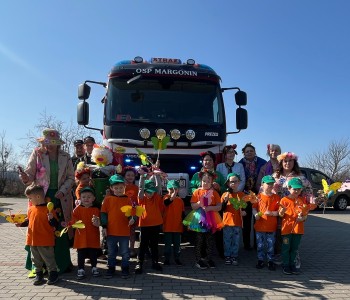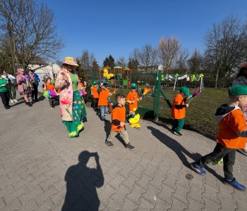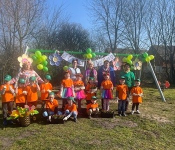 Dzieci były podekscytowane nadchodzącą zabawą i pracą w ogrodzie. Po powitaniu gości przedszkolaki zaprezentowały swoje umiejętności wokalne oraz recytatorskie. Na początku spotkania omówiliśmy, dlaczego wiosna jest tak ważna i jak wiele radości przynosi nam natura. Wspólnie z opiekunami dzieci poznały różne rodzaje kwiatów. Wybór padł na kolorowe bratki i stokrotki, które pięknie zdobią nasze otoczenie. Przedszkolaki dowiedziały się, jak dbać o rośliny, co im potrzebne do życia i jak ważna jest ich pielęgnacja. Podczas spotkania panowała wspaniała atmosfera. Dzieci z radością chwytały za narzędzia ogrodnicze, a ich śmiech rozbrzmiewały w powietrzu. Wspólna praca nauczyła współpracy, odpowiedzialności. Odwiedziła nas również Pani Wiosna, która przeczytała dzieciom bajkę „Różdżka Pani Wiosny” na łonie natury. Na zakończenie wydarzenia pożegnaliśmy się z Marzanną, którą przedszkolacy przekazali OSP z Margonina za co bardzo dziękujemy. Powitanie Wiosny było wspaniałą okazją do nauki i zabawy, a nasze nowe roślinki będą przypominały nam o tej radosnej chwili. Dziękujemy zaproszonym gościom za miło spędzony czas, to wydarzenie połączyło edukację z zabawą i miłością do natury. Już nie możemy się doczekać kolejnych wiosennych aktywności, które pozwolą nam jeszcze bardziej zbliżyć się do otaczającego nas świata przyrody.
