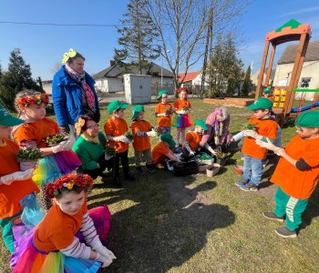 Wraz z nadejściem wiosny, kiedy przyroda budzi się do życia grupa Myszka Miki zorganizowała wyjątkowe wydarzenie „Kolory Wiosny” na które zaprosiła KGW z Lipin oraz Panią Anię, bibliotekarkę. Wspólnie z gośćmi postanowiliśmy uczcić ten radosny czas poprzez sadzenie kwiatków, co wprowadziło wiosenny nastrój. Przedszkolaki z entuzjazmem przygotowywały się do tego dnia.