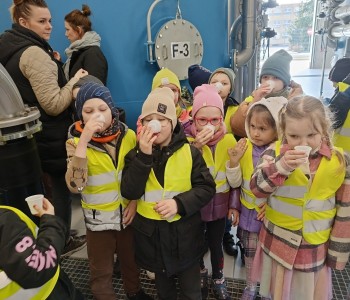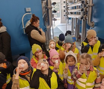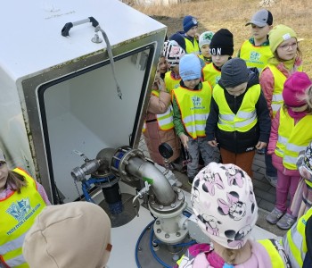 Pan kierownik Dariusz Górka oprowadzając nas po zakładzie, wyjaśniał i pokazywał proces oczyszczania wody. Uczniowie zobaczyli wiele pomp, filtrów oraz innych urządzeń niezbędnych do tego, aby woda nadawała się do picia. Dodatkowo kierownik wyjaśnił, na czym polega praca w takim zakładzie.