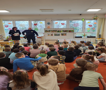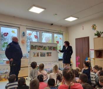 W środę 10 kwietnia grupy: Wróbelek Elemelek, Czerwony Kapturek i Muminek gościły przedstawicieli Straży Miejskiej w Margoninie. Pani komendant wygłosiła dzieciom pogadankę profilaktyczną dotyczącą sytuacji i zachowania się dzieci wobec spotkania z nieznajomym.