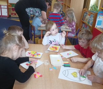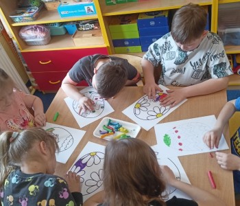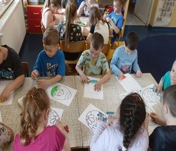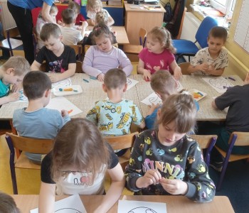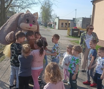 Oczekując na Święta Wielkanocne dzieci w przedszkolu w Radwankach ozdobiły kontury pisanek wyklejając je kolorowym papierem lub malowały plasteliną. Z niecierpliwością czekały też na przybycie Zajączka. Jakie było wielkie zaskoczenie i radość kiedy do przedszkola przybył Zając, a na placu zabaw znalazły się upominki dla dzieci.