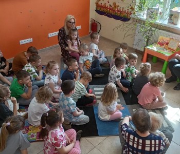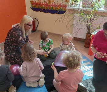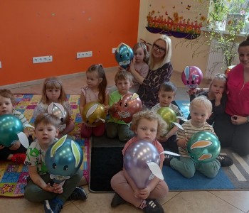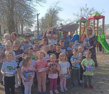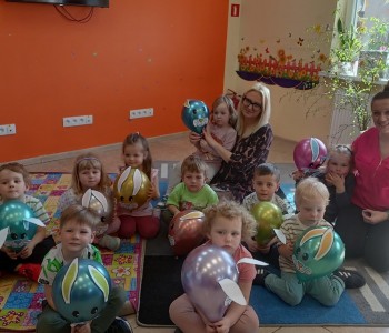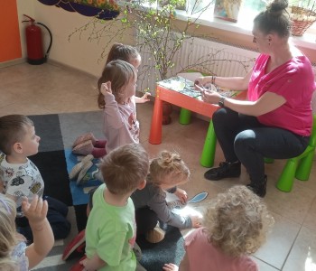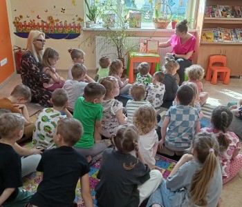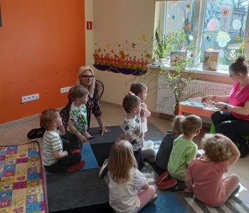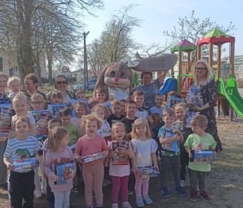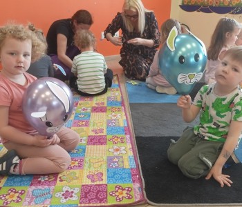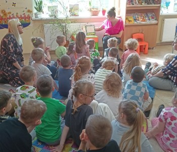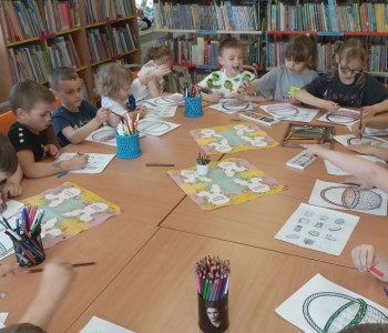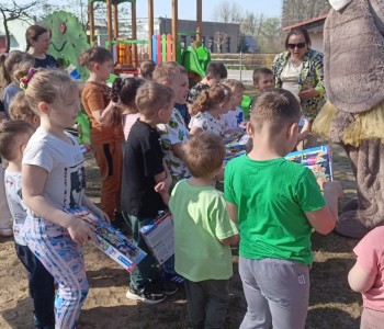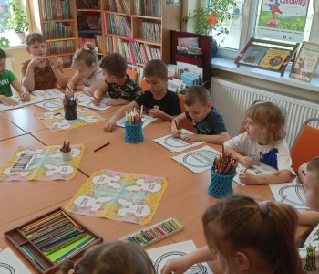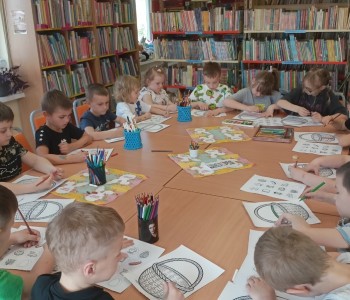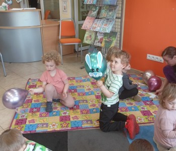 Na dzieci czekała jeszcze jedna niespodzianka. Po odjeździe Zająca udaliśmy się do Biblioteki w Radwankach, gdzie bibliotekarka pani Ewelina przeczytała dzieciom bajkę o Fenku i Wielkanocy. Z bajki dowiedziały się o tradycjach świątecznych, a następnie dzieci z grupy Pszczółki Mai kolorowały koszyczek i potrawy, które wkładamy do koszyczka wielkanocnego, a dzieci z grupy Bolka i Lolka wykonały zajączka na balonie. Dziękujemy rodzicom z Rady Rodziców za upominki dla dzieci, a pani Ewelinie za mile spędzony czas w bibliotece. Alina Zaborowska