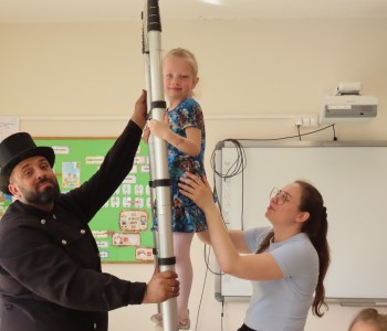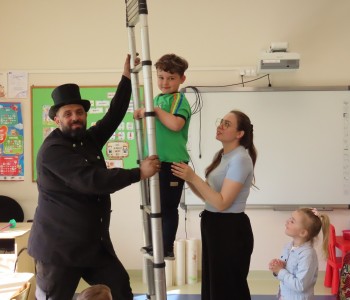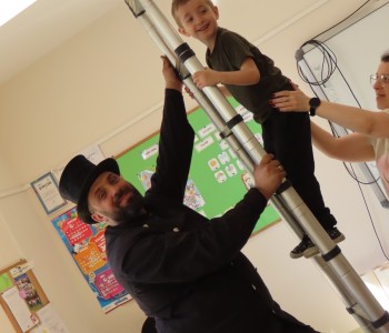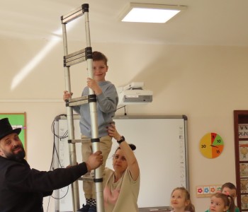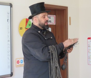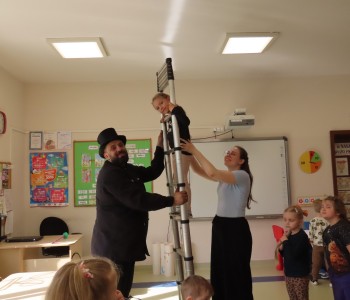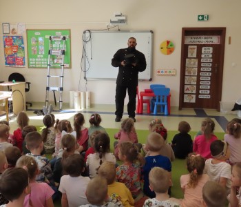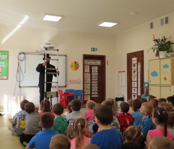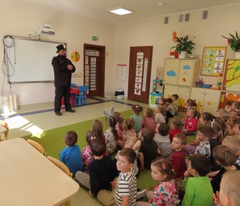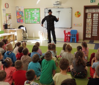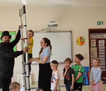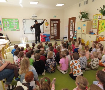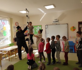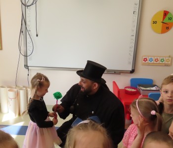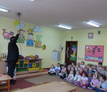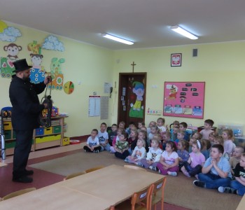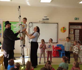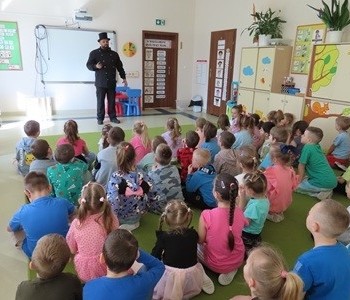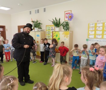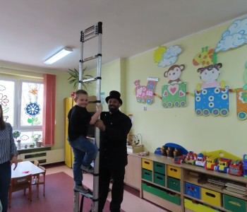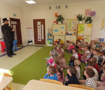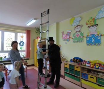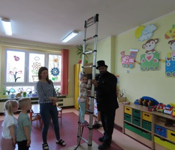 15 kwietnia nasze przedszkole odwiedził Mistrz Kominiarstwa. Gość opowiedział dzieciom o tym jak pracuje, jaki narzędziami się posługuje, jak zostać kominiarzem. Każdy przedszkolak już wie dlaczego praca kominiarza jest bardzo ważna, ile kominiarz ma guzików w swoim mundurze oraz dlaczego na jego widok łapiemy się za guzik :).