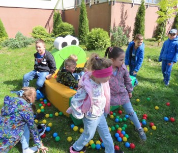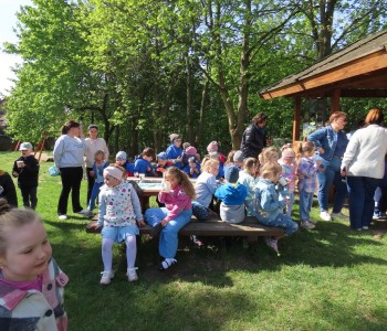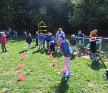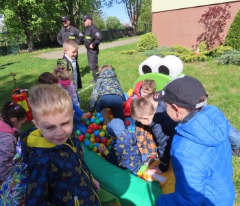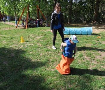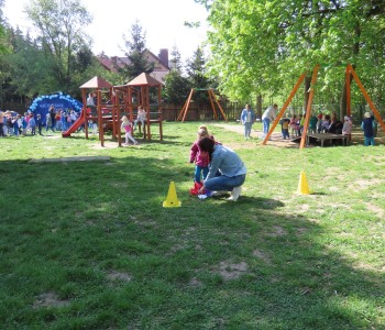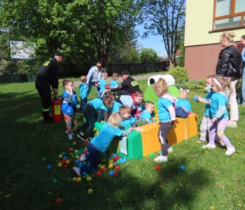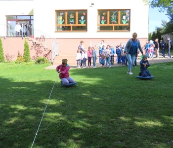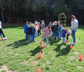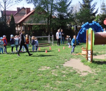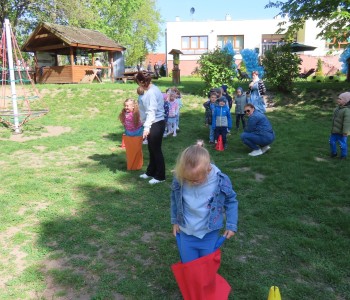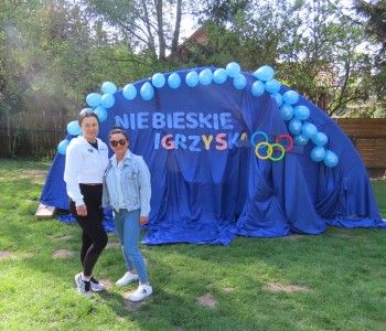 W ramach igrzysk na dzieci czekały liczne konkurencje sportowe – wśród nich znalazły się m.in. wyścigi w workach, skoki przez skakankę oraz toczenie butelki z wodą. Każda konkurencja była dostosowana do możliwości dzieci, sprawiając im jednocześnie mnóstwo radości i satysfakcji. Wielką atrakcją była wizyta trenerki personalnej Joanny Bury, która poprowadziła energetyczne zajęcia fitness, zachęcając dzieci do wspólnego ruchu i zabawy. Nie zabrakło również emocjonującego spotkania ze Strażakami z OSP Margonin – przygotowali oni specjalną konkurencję z wykorzystaniem hydronetki wodnej, co wzbudziło ogromne zainteresowanie i entuzjazm wśród uczestników. Podczas igrzysk dzieci mogły odpocząć w specjalnie przygotowanej strefie relaksu, a po sportowych zmaganiach czekał na nie zdrowy poczęstunek. O pyszną i pożywną przekąskę zadbało Stowarzyszenie Margońska Wieś- dziś i jutro, za co serdecznie dziękujemy! Niebieskie Igrzyska były nie tylko dniem pełnym ruchu i zabawy, ale również ważnym elementem wychowania w duchu tolerancji, zrozumienia i wzajemnego wsparcia. Dziękujemy wszystkim osobom zaangażowanym w organizację wydarzenia – to dzięki Wam ten dzień na długo pozostanie w pamięci naszych przedszkolaków!