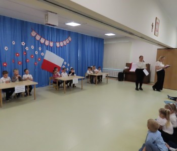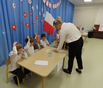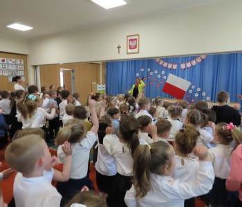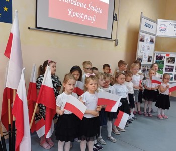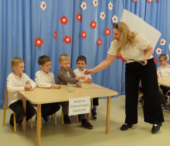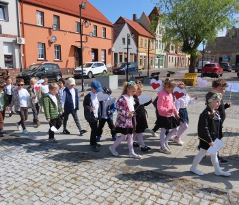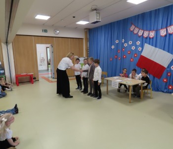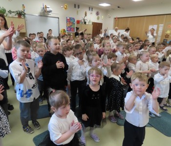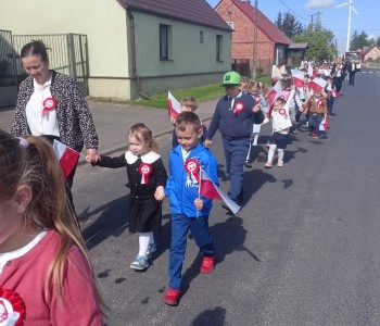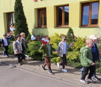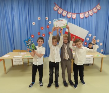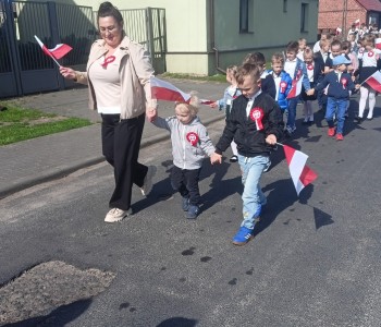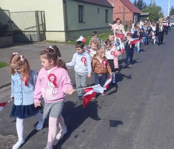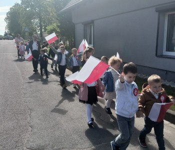 Świętowanie rozpoczęło się od quizu wiedzy patriotycznej, podczas którego najstarsze grupy mogły wykazać się znajomością symboli narodowych Dzieci zaskakiwały swoją wiedzą i zaangażowaniem, odpowiadając na pytania z dużą pewnością siebie i dumą. Kolejnym punktem programu było pamiątkowe zdjęcie wszystkich uczestników z gigantyczną flagą Polski, rozwiniętą na placu przedszkolnym. Ten wyjątkowy moment uwiecznił ducha wspólnoty, dumy narodowej i dziecięcej radości, następnie odbył się uroczysty pochód z flagami przez miasto. Maluchy, niosąc własnoręcznie wykonane biało-czerwone chorągiewki, przemaszerowały ulicami w towarzystwie nauczycielek i pracowników przedszkola, wzbudzając wiele pozytywnych emocji wśród przechodniów. Dzień Flagi w przedszkolu był nie tylko wspaniałą lekcją patriotyzmu, ale też okazją do wspólnej zabawy i integracji lokalnej społeczności. Mali patrioci z pewnością zapamiętają ten dzień na długo!