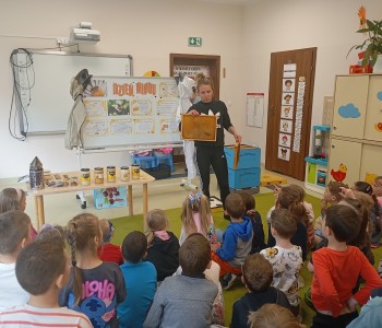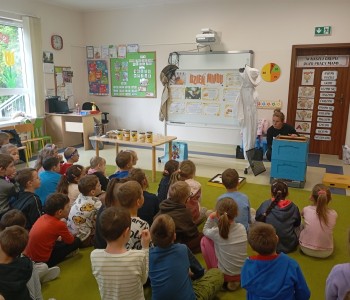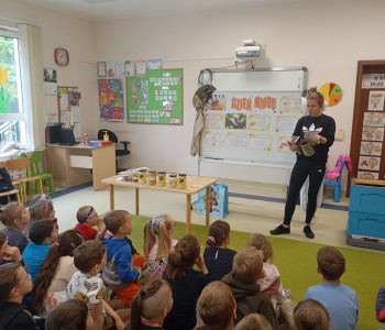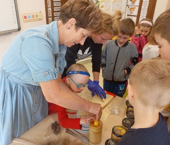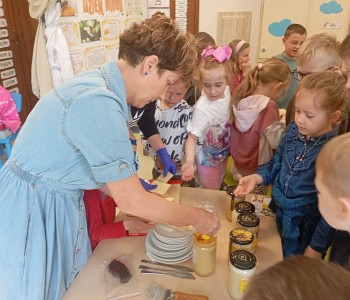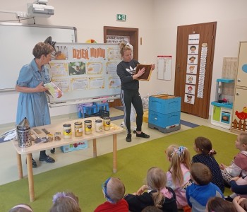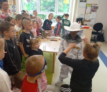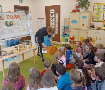 Grupa Muminków oraz Czerwonego Kapturka obchodziła „Dzień Miodu”. Z tej okazji gościliśmy w przedszkolu mamę Nadii, panią Natalię Noske, która przybliżyła dzieciom proces powstawania miodu oraz charakterystykę zawodu pszczelarza. Dziękujemy za poświęcony czas i za przekazanie dzieciom wiedzy na temat pożyteczności pszczół. Małgorzata Byczek