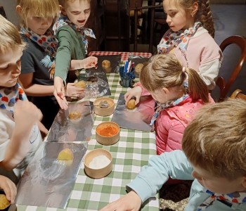 Następnie udaliśmy się na Stary Rynek, gdzie o godzinie 12.00 z zapartym tchem oglądaliśmy trykające się koziołki. Ostatnim punktem naszej wyprawy były warsztaty w Poznańskim Muzeum Pyry - to miejsce, które oddaje hołd temu wyjątkowemu warzywu, będącemu symbolem regionu. Wizyta w muzeum odkryła przed dziećmi wiele ciekawostek i opowieści związanych z historią ziemniaka, pozwalając spojrzeć na to powszechne warzywo z zupełnie nowej perspektywy. Dowiedzieliśmy się, jak ziemniak zmieniał kulinarną kulturę i jakie znaczenie odgrywał w gospodarce. Muzeum pokazało, że pyry są czymś więcej niż tylko dodatkiem – to element wielkopolskiej tożsamości i symbol historii. Do domu dzieci wróciły szczęśliwe, pełne wrażeń i oczywiście ze swoją własno przyrządzoną pyrą.