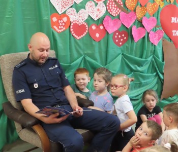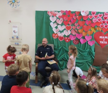 W ramach ogólnopolskiej kampanii Cała Polska Czyta Dzieciom, nasze przedszkole odwiedzili wyjątkowi goście – policjanci z Komisariatu Policji w Margoninie. Funkcjonariusze przeczytali dzieciom opowiadania, które nie tylko bawiły, ale również uczyły ważnych zasad bezpieczeństwa. Po wspólnym czytaniu był również czas na rozmowę – przedszkolaki mogły zadawać pytania, zobaczyć elementy policyjnego wyposażenia, a także dowiedzieć się, jak wygląda praca policjanta na co dzień oraz zwiedzić policyjny radiowóz.