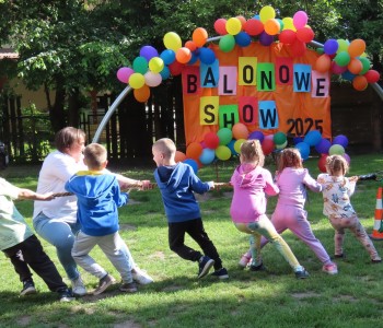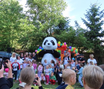 Wśród najmłodszych największym zainteresowaniem cieszyły się dmuchane zamki, stoiska z popcornem i watą cukrową, a także stanowiska z balonowymi rzutkami i balonowymi gniotkami, które przygotowały nauczycielki przedszkola. Gościem specjalnym festynu była Grupa Animacyjna „Zuzulki” z Chodzieży, która zadbała o wspaniałe balonowe animacje. Animatorki tworzyły z długich balonów różnorodne figury – zwierzątka, miecze, kwiaty – budząc zachwyt wśród uczestników. Niespodzianką dla dzieci okazała się także urocza maskotka Panda, która wzbudziła wiele radości i emocji. Festyn „Balonowe Show” był nie tylko wspaniałą okazją do wspólnej zabawy, lecz także ważnym momentem integrującym społeczność przedszkolną. Dzięki zaangażowaniu rodziców, nauczycieli oraz pracowników Przedszkola Samorządowego w Margoninie wydarzenie zakończyło się pełnym sukcesem i pozostawiło niezapomniane wspomnienia.