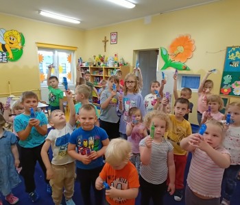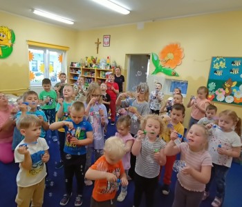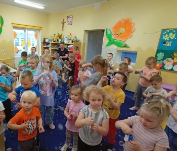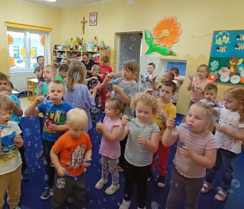 Dzieci w upominku dostały bańki mydlane. Alina Zaborowska