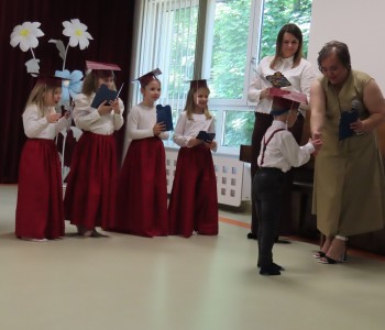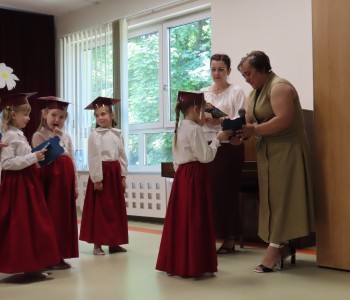 Nasi absolwenci zaprezentowali swoje umiejętności artystyczne prezentując piękne tańce i recytując wiersze. Na widowni nie zabrakło łez wzruszenia. Dzieci otrzymały pamiątkowe dyplomy a tradycyjne rzucenie biretu zakończyło uroczystość, która na długo pozostanie w pamięci wszystkich uczestników.