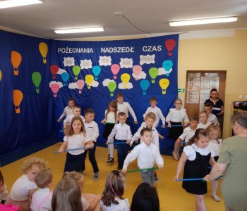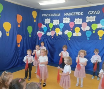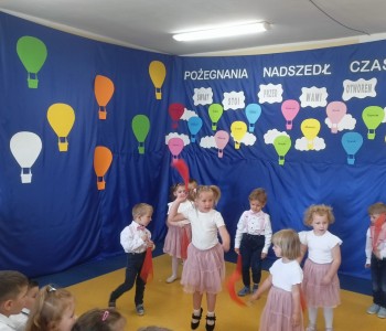Dzieci zaprezentowały się w programie artystycznym, na który składały się wiersze, piosenki oraz wesołe tańce. Dzieci młodsze wierszem i tańcem pożegnały swoich starszych kolegów. Na zakończenie uroczystości kilka ciepłych słów do absolwentów skierowała Dyrektor Przedszkola pani Katarzyna Panek. Następnie dzieci otrzymały pamiątkowe dyplomy i książki. Naszym absolwentom życzymy samych sukcesów w szkole. Alina Zaborowska
