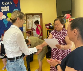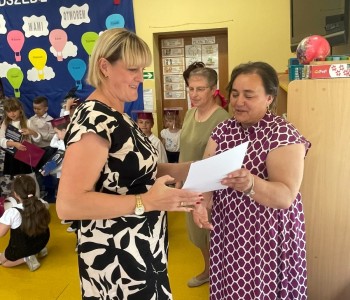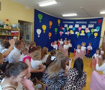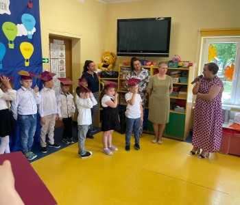 Przedszkolaki oraz rodzice dzieci kończących przedszkole w środę 18 czerwca spotkali się na uroczystości z okazji pożegnania przedszkola. Pożegnaliśmy 16 przedszkolaków, którzy po wakacjach rozpoczną edukację w szkole. Zakończyli pierwszy etap edukacji – edukację przedszkolną i wkroczyli w życie szkolne.
