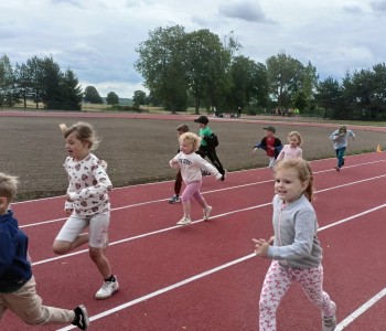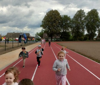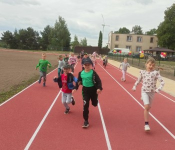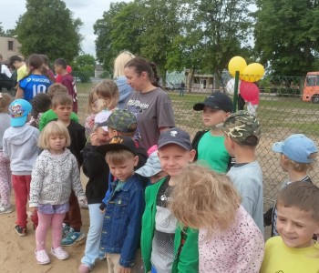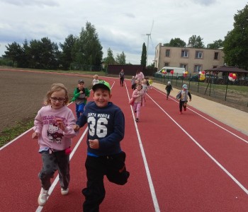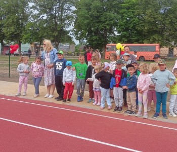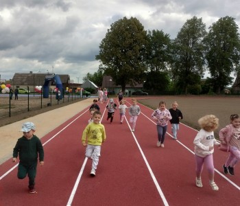 We wtorek 24 czerwca 2025 dzieci z grupy Bolka i Lolka oraz Pszczółki Mai brały udział w uroczystości otwarcia nowego boiska lekkoatletycznego, które powstało przy Szkole Podstawowej im. Powstańców Wielkopolskich w Radwankach. Po uroczystym przecięciu wstęgi po biegu sztafetowym zaproszonych gości i uczniów ze szkoły dzieci przedszkolne miały okazję przebiec się po nowej bieżni. Alina Zaborowska