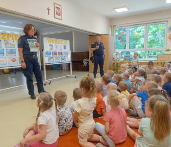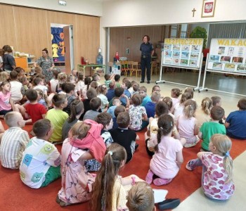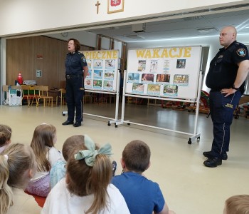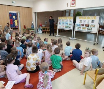Straż Miejska przypomniała dzieciom między innymi co zrobić gdy zaczepia nas obca osoba, jak bezpiecznie poruszać się podczas jazdy rowerem czy hulajnogą, jak bezpiecznie spędzić czas nad wodą i w górach oraz jak chronić się przed słońcem. Teraz nasze przedszkolaki będą już pamiętać jak bezpiecznie spędzić wakacje.