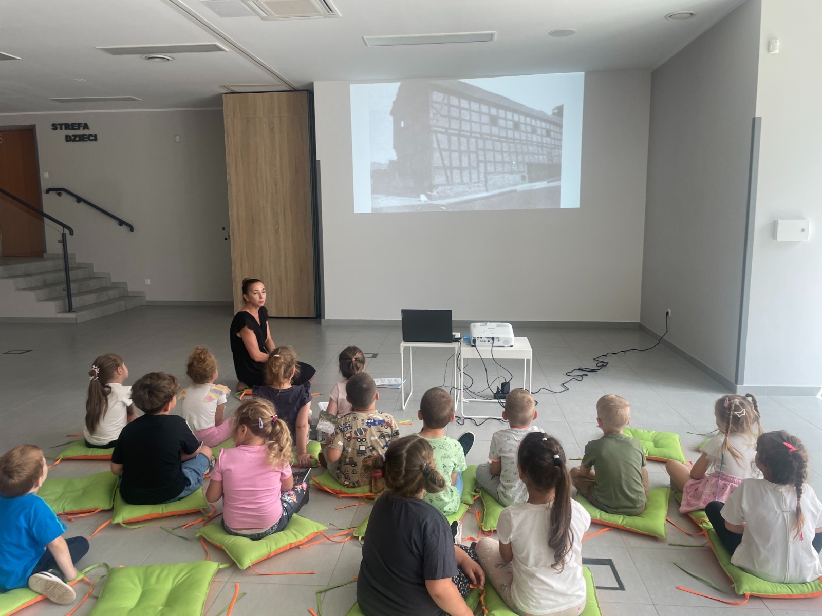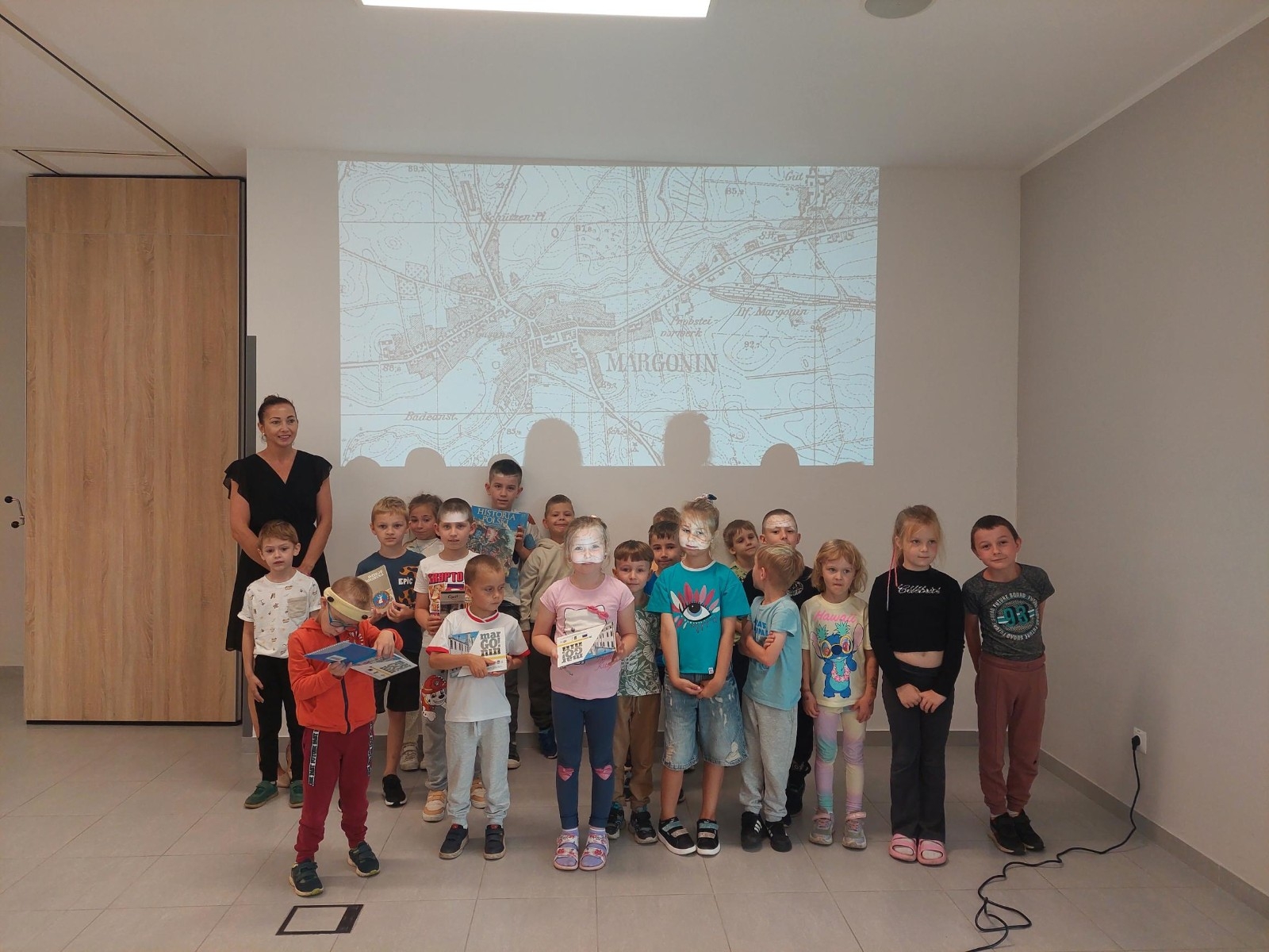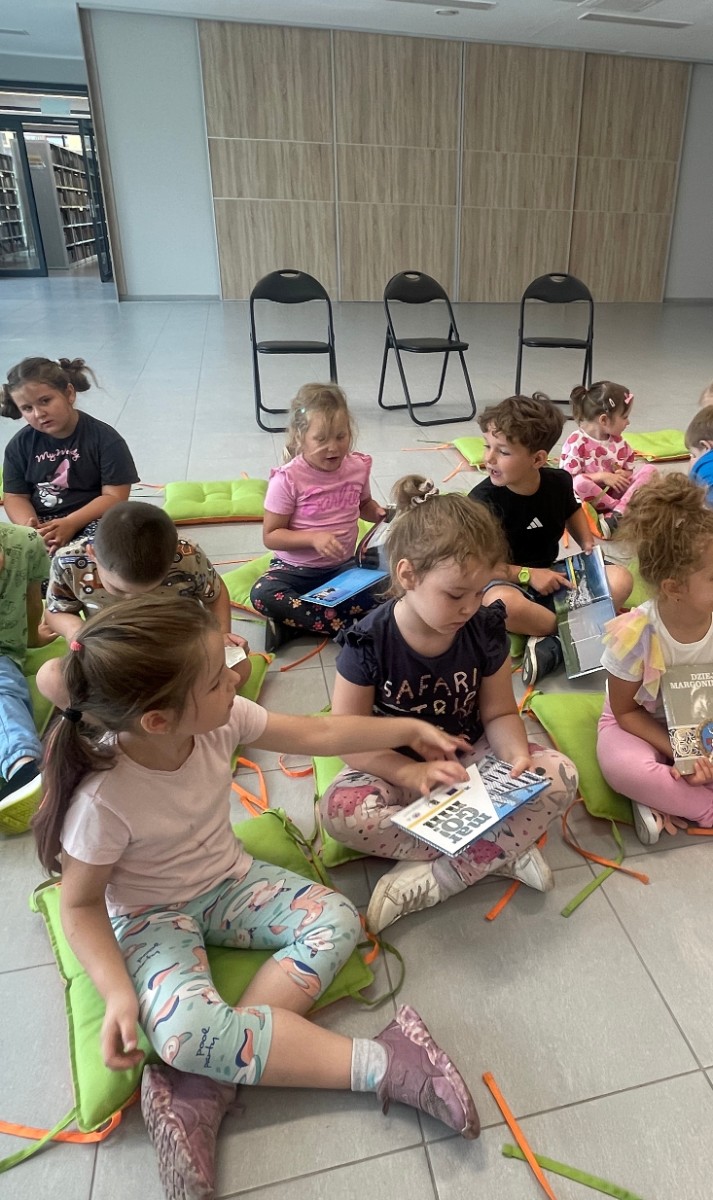 Dzieci z zainteresowaniem słuchały opowieści o tym, jak wyglądała wtedy architektura miasta, jakie pojazdy jeździły po ulicach oraz czym zajmowali się mieszkańcy. Następnie bibliotekarka opowiedziała dzieciom o dawnym Margoninie, w której głównymi bohaterami byli mieszkańcy i ich codzienne przygody. Najmłodsi dowiedzieli się, jak wyglądało życie na wsi, jakie zwierzęta hodowano i jakie zwyczaje panowały w tamtych czasach. Tego typu spotkania mają nie tylko edukacyjny charakter, ale także pomagają najmłodszym w budowaniu więzi z lokalną historią i kulturą. Dzieci dowiedziały się, jak wyglądało ich miasto kiedyś i jakie zmiany zaszły na przestrzeni lat. To ważne, aby od najmłodszych lat kształtować poczucie dumy i tożsamości z miejsca, w którym się dorasta.