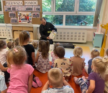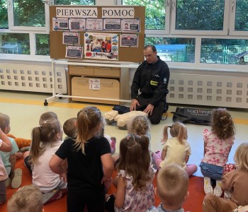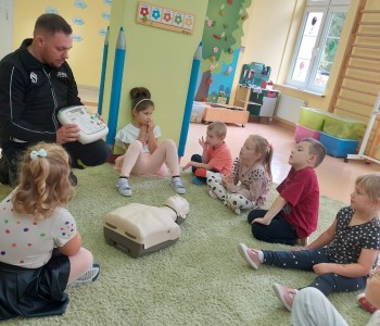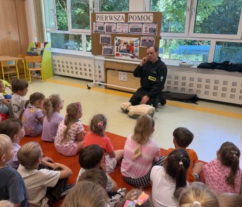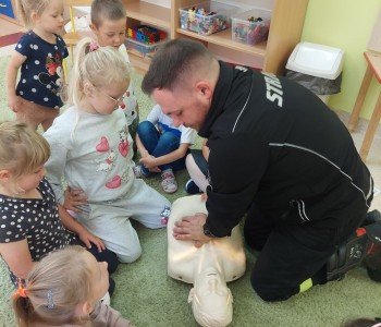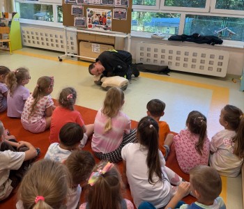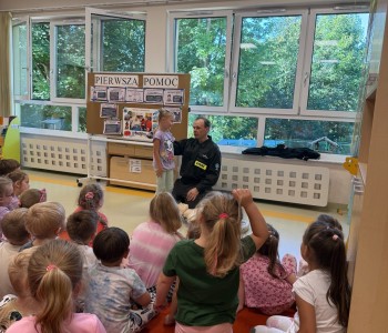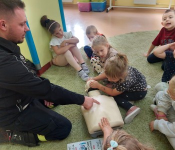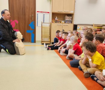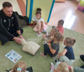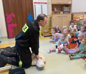 Gośćmi specjalnymi byli strażacy, którzy w ciekawy i przystępny sposób pokazali dzieciom, jak dbać o bezpieczeństwo i jak reagować w sytuacjach, gdy ktoś potrzebuje pomocy. Przedszkolaki z ogromnym zainteresowaniem brały udział w zajęciach, poznały podstawowe zasady udzielania pierwszej pomocy, utrwaliły numery alarmowe oraz miały okazję zobaczyć, jak wygląda resuscytacja na specjalnym fantomie. Warsztaty wzbudzały wiele radości, entuzjazmu – dzieci uczyły się poprzez zabawę, a zdobyta wiedza z pewnością zostanie z nimi na długo. Dzięki takim przedsięwzięciom najmłodsi uczą się odpowiedzialności, odwagi oraz troski o innych. Kinga Kądziołka