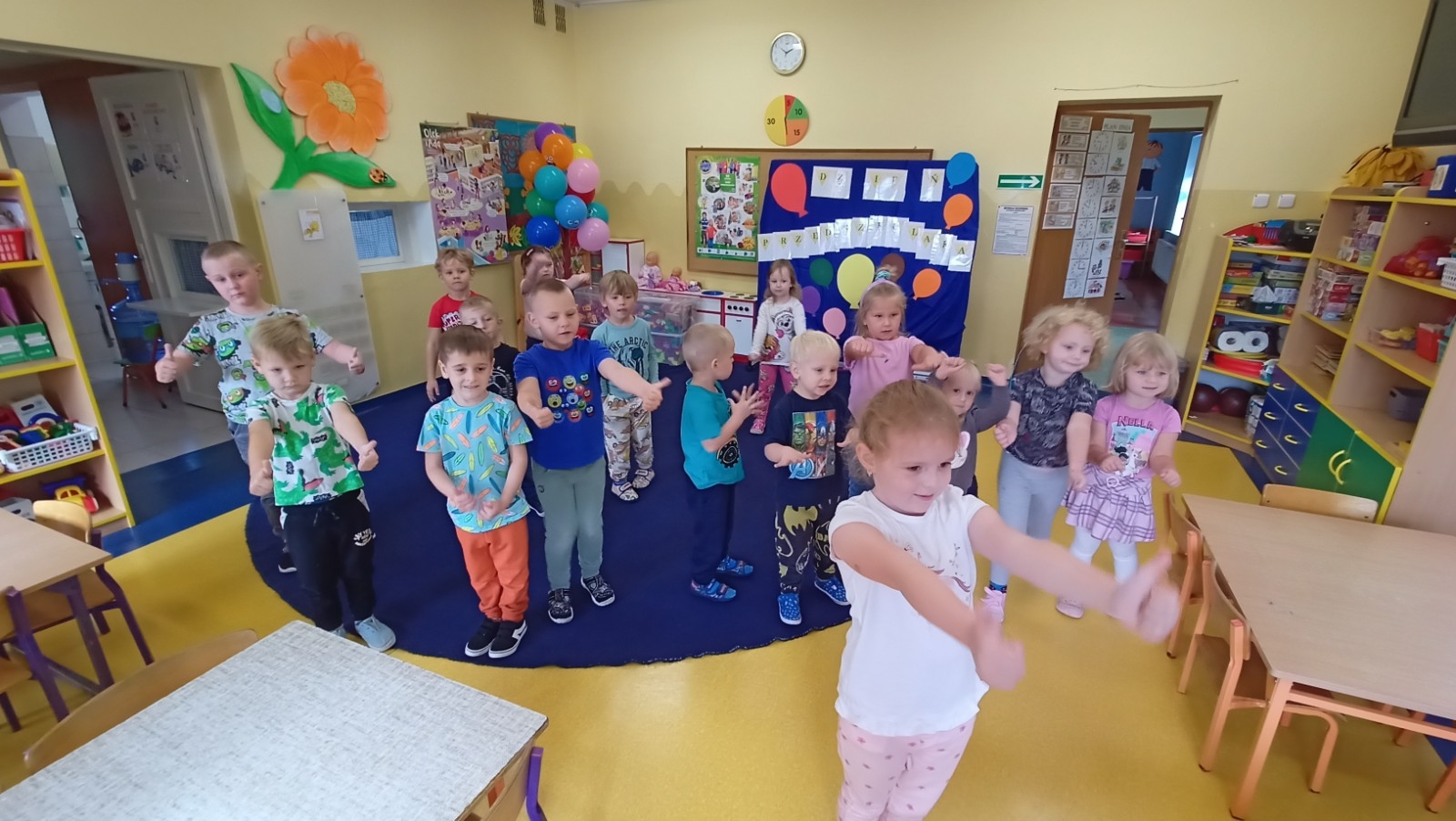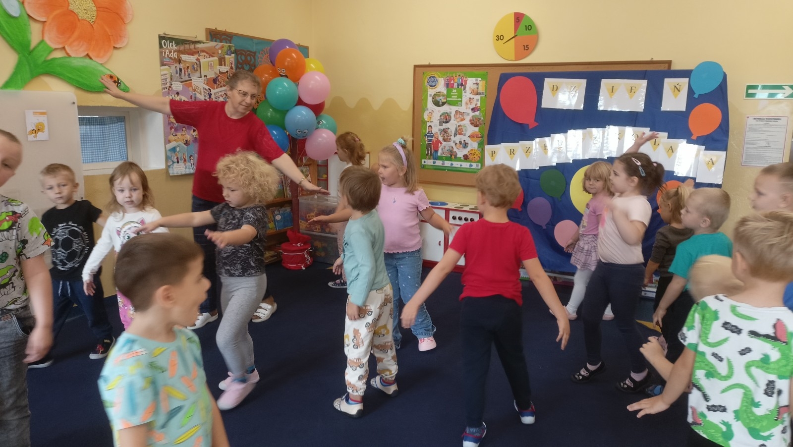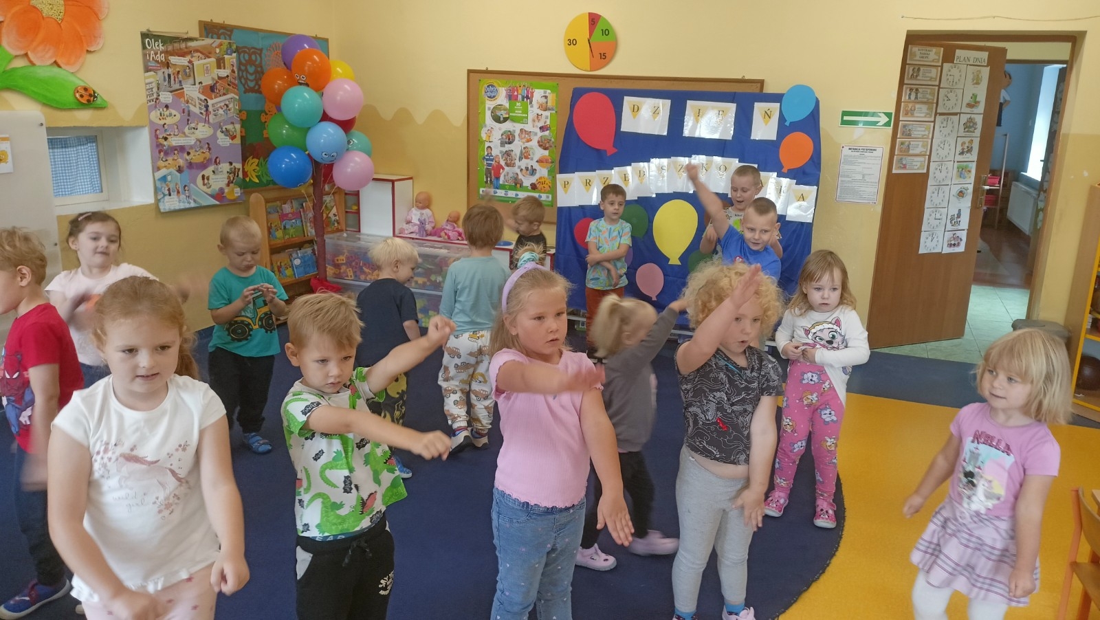 W środę 17 września dzieci z grupy Pszczółki Mai obchodziły Ogólnopolski Dzień Przedszkolaka, który ma na celu podkreślanie wagi edukacji przedszkolnej oraz promowanie roli przedszkola w rozwoju dzieci, zapewnieniu im radości i beztroskiej zabawy. W tym dniu na dzieci czekały zabawy zarówno taneczne jak i sportowe, w których chętnie brały udział.