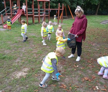 W naszym przedszkolu odbyła się kolejna akcja „Sprzątanie świata”, której celem było kształtowanie postaw proekologicznych u dzieci oraz nauka dbania o czystość najbliższego otoczenia. Dzieci najpierw wzięły udział w krótkiej pogadance na temat segregacji śmieci, ochrony środowiska i znaczenia wspólnej troski o środowisko.