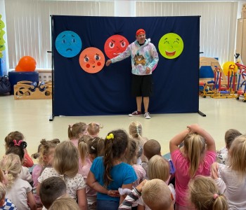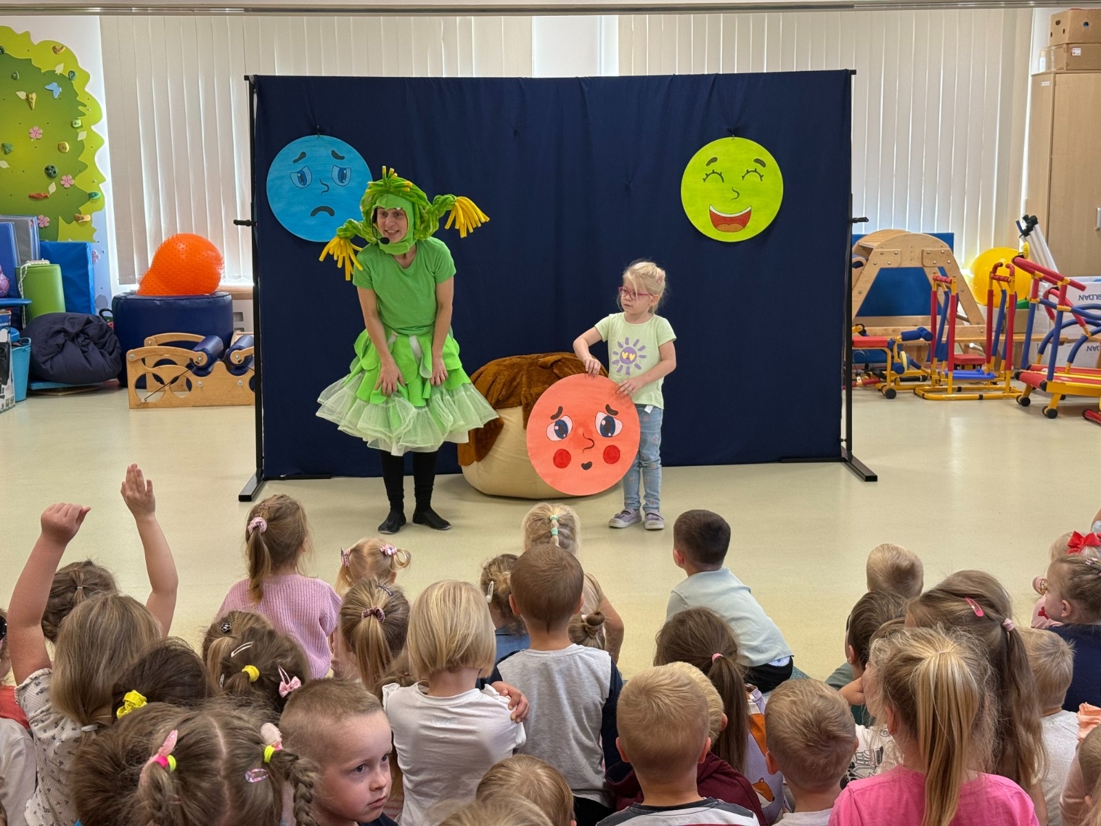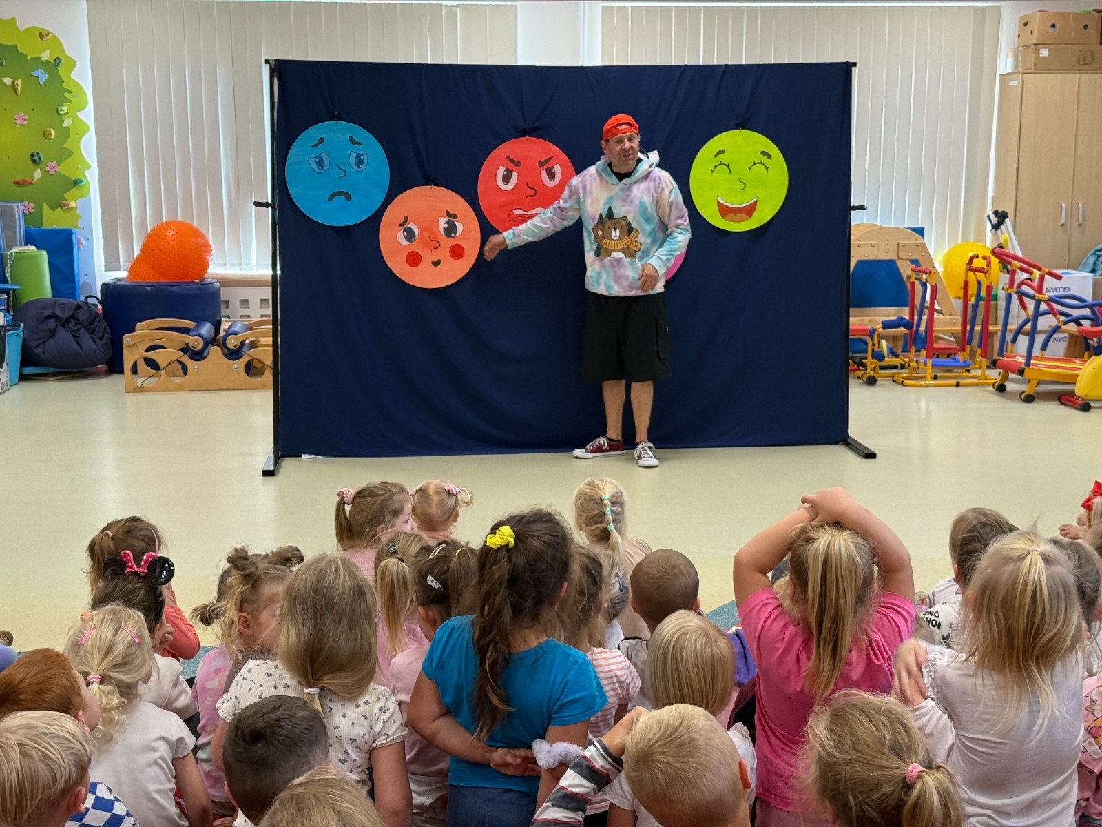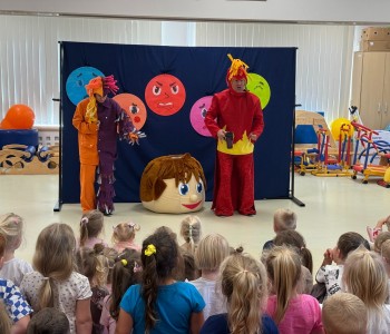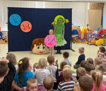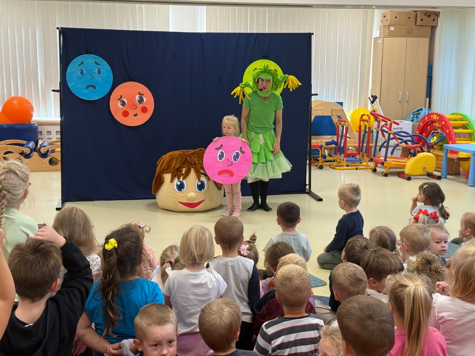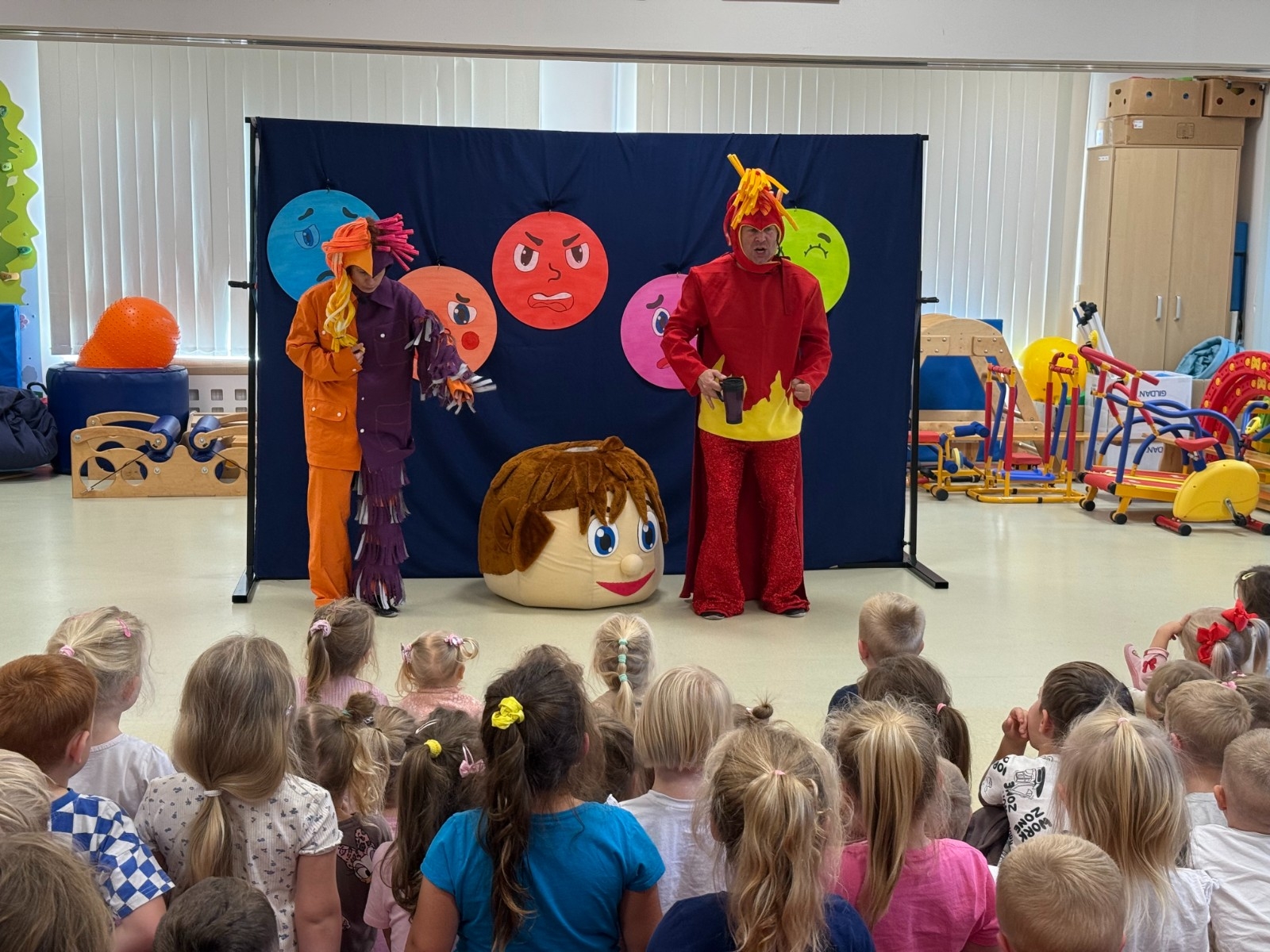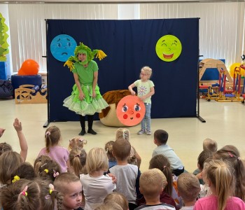 Spektakl miał charakter komediowy, co nie było bez znaczenia dla małych odbiorców. Uwagę przedszkolaków skupiały kolorowe stroje oraz poczucie humoru aktorów. W trakcie oglądania przedstawienia dzieci utrwaliły sobie podstawowe emocje, a także zostały zapoznane ze sposobami radzenia sobie z nimi. Obserwując poruszenie i zadowolenie na twarzach przedszkolaków można stwierdzić, że przedstawienie było udane!