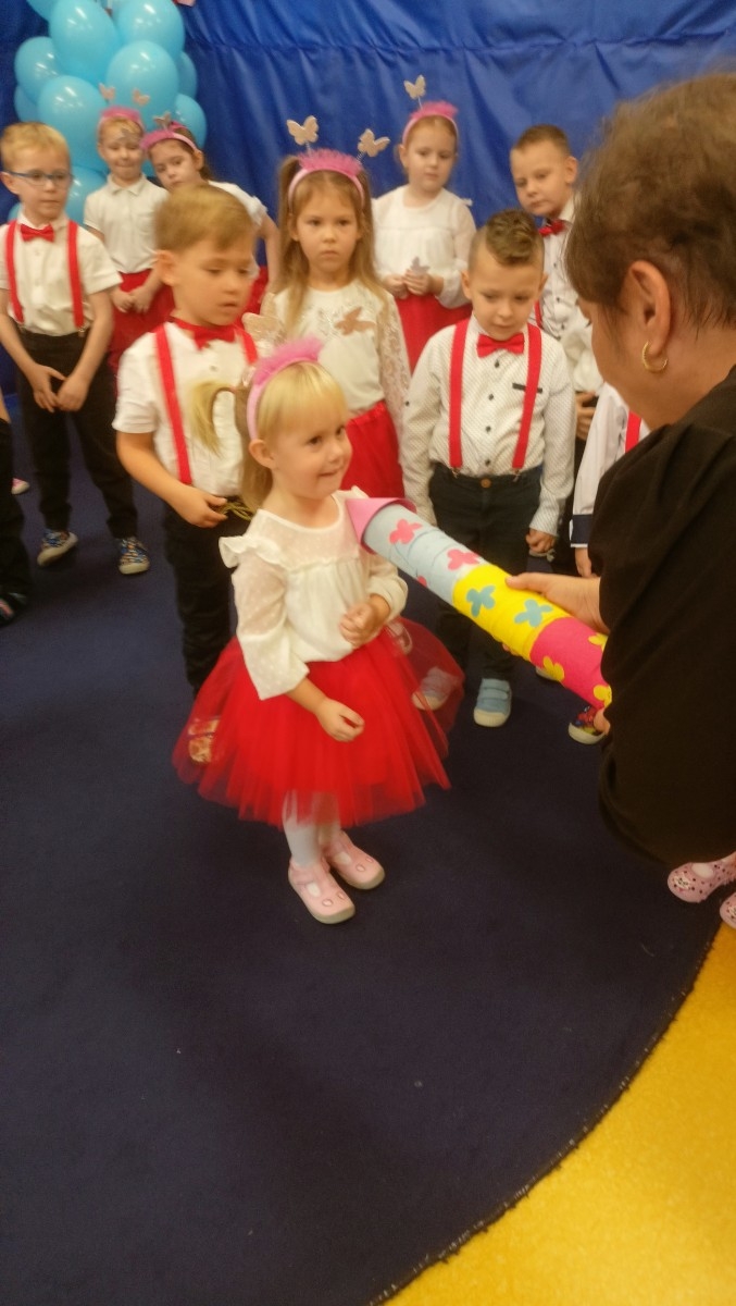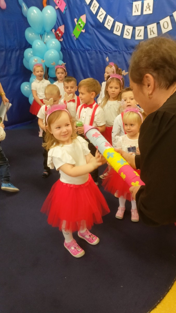 Po części artystycznej nastąpiło uroczyste pasowanie dzieci na przedszkolaków. Pasowania dokonała pani Dyrektor Przedszkola Samorządowego w Margoninie Katarzyna Panek. Na pamiątkę tego ważnego wydarzenia każdy przedszkolak otrzymał drobny upominek i balonik. Dla przedszkolaków było to wielkie przeżycie, a dla rodziców powód do dumy i zadowolenia ze swoich pociech. Alina Zaborowska